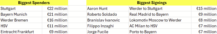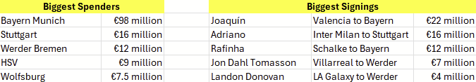 Woodward meanwhile would have ups and downs in the window. He lost his best player up to that point as Patrick Ochs went to Spurs for €12 million. He was able to react by poaching Clemens Fritz from Werder Bremen. Eintracht also signed Sylvain Marveaux and Vlad Munteanu. Elsewhere in the transfer market, Lars Bender would make his move to the Bundesliga and Stuttgart, Neven Subotic would move to Wolfsburg, and Toni Kroos would leave Bayern for Werder Bremen. Also, Eric Djemba-Djemba signed for Hertha for €1.8 million, so there’s that.