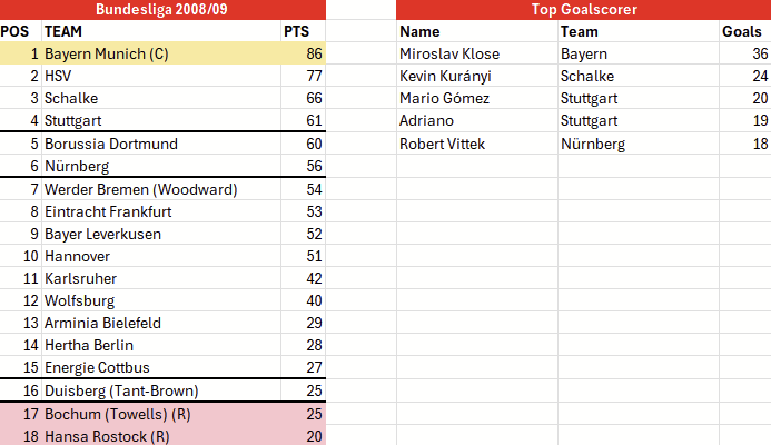 Tant-Brown had been dealt the toughest hand at the beginning of the season, but he had overcome a lot in the rückrunde to secure his place in the top-flight for another season. Perhaps he was the best of our managers for that reason. Woodward had won all his games in charge of Werder to overtake his former side on the last day, whilst Towells had been good but not good enough with Bochum. He did ensure he wouldn’t face a second sacking though, meaning he’ll enjoy the best league in the world as we enter 2008/09.